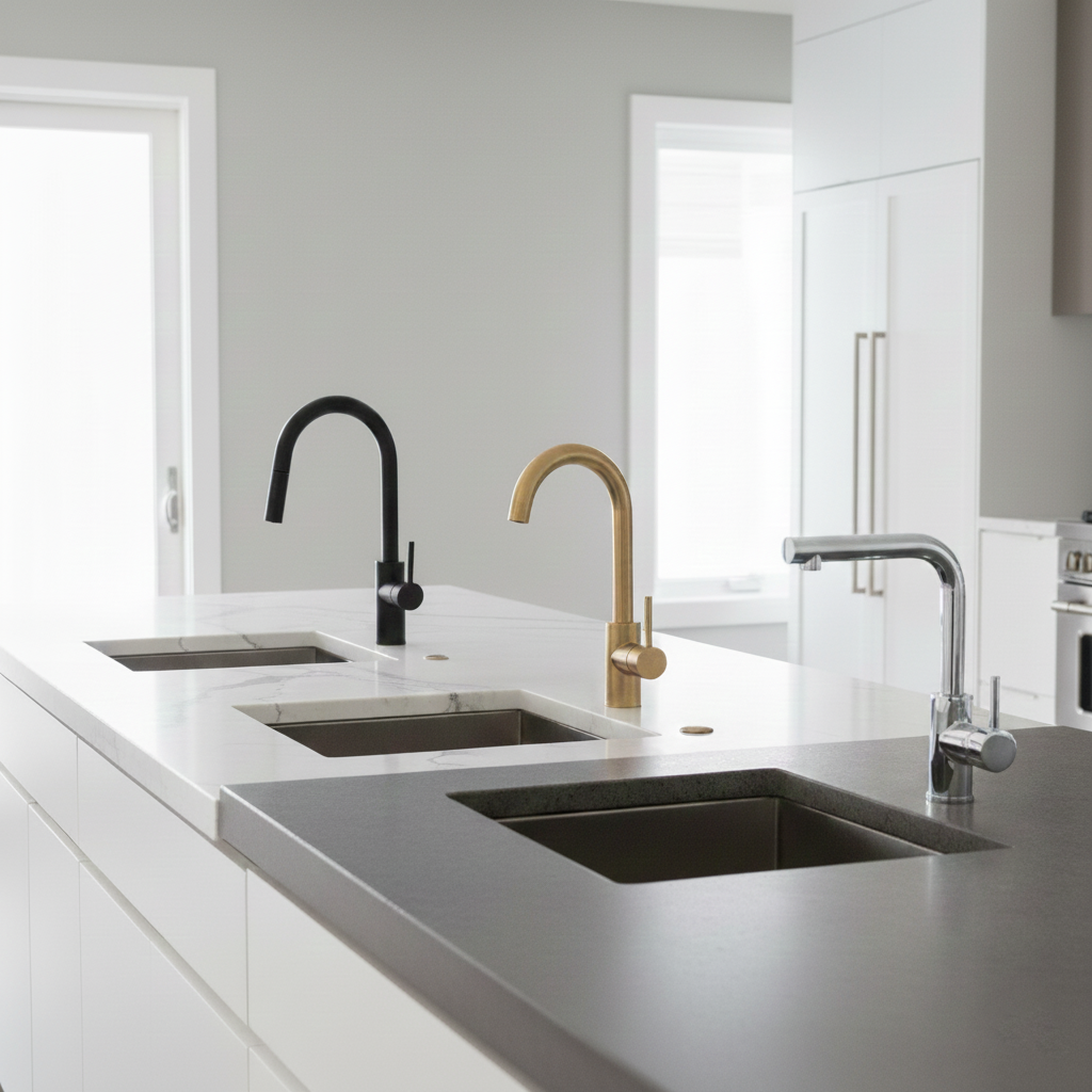 Will a matte black faucet look too bold with my light countertop? Does a sleek pull-down faucet fit my kitchen design, or should I choose a single-handle model? Which faucet finish actually stays clean in a modern kitchen? These are the questions homeowners bring into our showroom as they pair faucets with new stone and […]